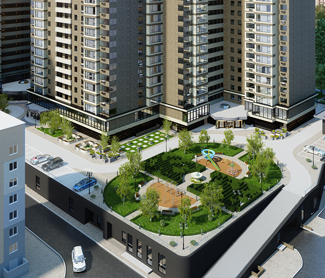 Тип паркинга: двухуровневый подземный паркинг и наземная парковка