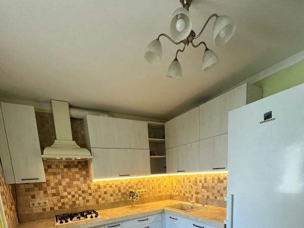 | Number of rooms | 3 bedroom apartment | | Floor | 5 | | Number of floors | 10 | | Area ( m2 ) | 85 | | Living space ( m2 ) | 56 | | Kitchen area ( m2 ) | 15 | | Exterior walls | house of sand-lime brick | | Condition of the apartment | good condition | | Bathrooms | separate bathroom | | Balcony | glazed, 2, | | Additionally about the house (where the apartment) : | near the Park, developed infrastructure, good transport interchange, concrete floors, code lock, overhaul, gas, lift, technical floor, Parking, | | Information about the apartment | õîëîäèëüíè, branded sanitary ware, furniture, fitted kitchen, washing mashine, water heater, intercom, air conditioner(s), PVC Windows, armour door, |