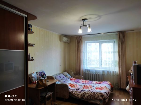 | Number of rooms | 1 bedroom apartment | | Floor | 15 | | Number of floors | 20 | | Area ( m2 ) | 43 | | Living space ( m2 ) | 18 | | Kitchen area ( m2 ) | 10 | | New building |  | | Exterior walls | panel building | | Condition of the apartment | Living condition | | Bathrooms | bathroom with toilet | | Balcony | 1 | | Additionally about the house (where the apartment) : | secure parking, near the Park, a quiet place, developed infrastructure, good transport interchange, concrete floors, code lock, lift, | | Information about the apartment | fitted kitchen, water heater, video surveillance, air conditioner(s), armour door, PVC Windows, |