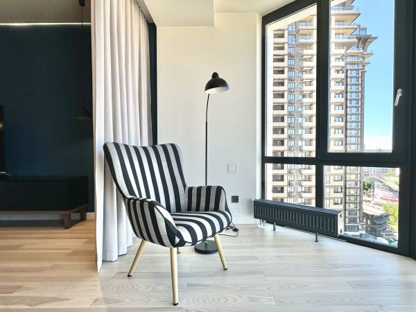 | Number of rooms | 3 bedroom apartment | | Floor | 14 | | Number of floors | 16 | | Area ( m2 ) | 120 | | Living space ( m2 ) | 60 | | Kitchen area ( m2 ) | 20 | | Exterior walls | the red brick house | | Condition of the apartment | high quality renovation | | Bathrooms | 2 | | Balcony | 2, glazed, | | Additionally about the house (where the apartment) : | lift, protection, overhaul, concrete floors, near Subway, good transport interchange, developed infrastructure, near the Park, | | Information about the apartment | PVC Windows, armour door, air conditioner(s), intercom, floor heating, water heater, washing mashine, fitted kitchen, furniture, branded sanitary ware, õîëîäèëüíè, |