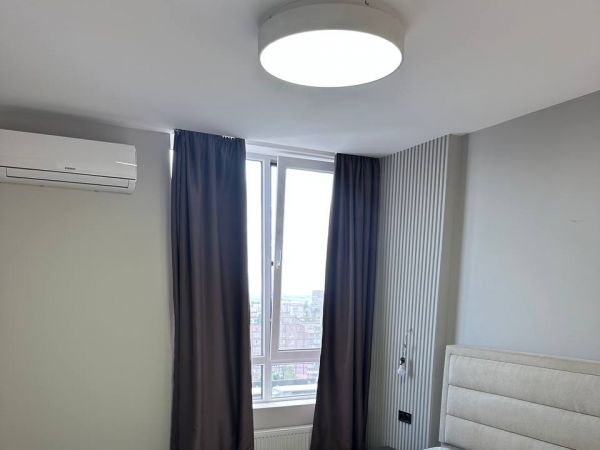 | Number of rooms | 2 bedroom apartment | | Floor | 13 | | Number of floors | 17 | | Area ( m2 ) | 42 | | New building |  | | Condition of the apartment | high quality renovation | | Bathrooms | bathroom with toilet | | Additionally about the house (where the apartment) : | Parking, lift, gas, developed infrastructure, | | Information about the apartment | PVC Windows, kitchen-Studio, air conditioner(s), floor heating, washing mashine, fitted kitchen, furniture, branded sanitary ware, õîëîäèëüíè, |