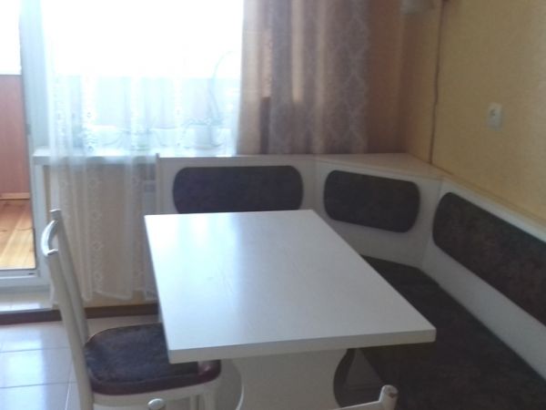 | Number of rooms | 1 bedroom apartment | | Floor | 12 | | Number of floors | 16 | | Area ( m2 ) | 41 | | Living space ( m2 ) | 17 | | Kitchen area ( m2 ) | 9 | | Exterior walls | panel building | | Condition of the apartment | good condition | | Bathrooms | bathroom with toilet | | Balcony | 1, glazed, | | Additionally about the house (where the apartment) : | lift, concrete floors, good transport interchange, developed infrastructure, | | Information about the apartment | PVC Windows, armour door, water heater, washing mashine, fitted kitchen, furniture, õîëîäèëüíè, |